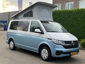 Volkswagen Transporter T6.1 buscamper Kenteken: HVV-49-V Kleur: wit/arctisch blauw (two-tone...