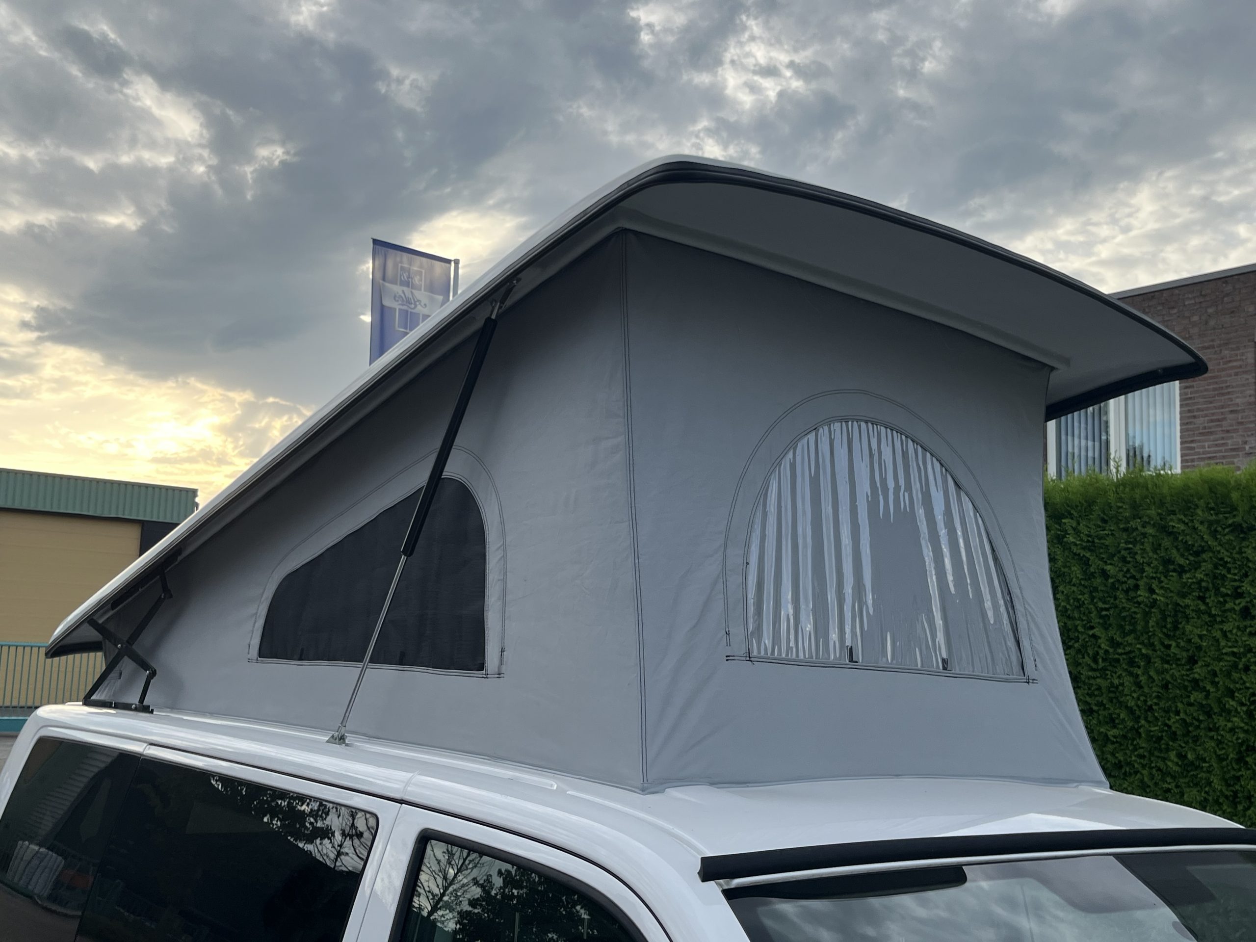 Groot slaaphefdak uit eigen productie. Aan de voorkant een raam, links/rechts ventilatiehorren. twee slaapplekken bovenin 180x110cm.